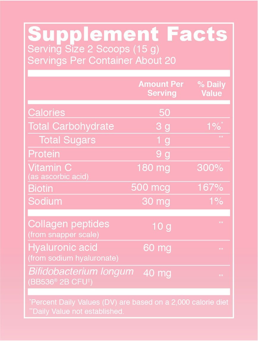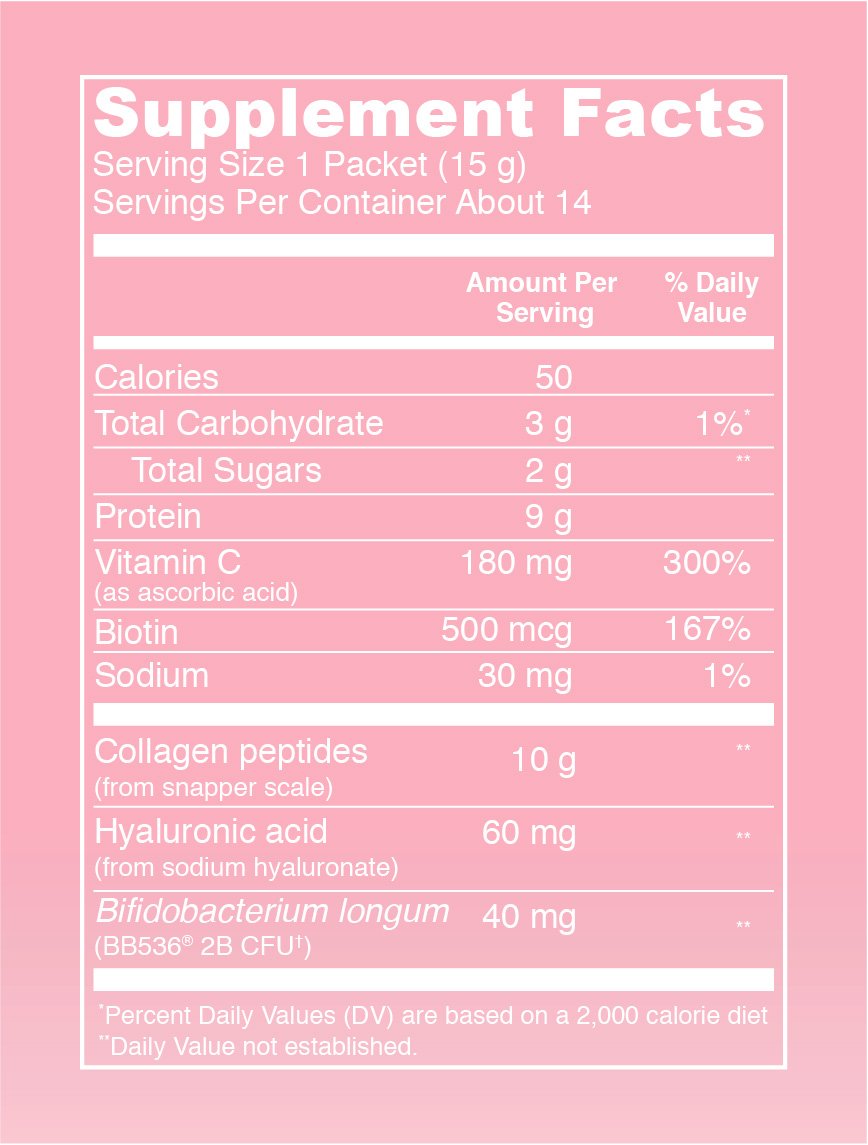 For radiant skin and beauty both inside and out, Collagen Beauty Glow is made with marine-based collagen peptides, hyaluronic acid, and probiotics. For that extra glow, we've added your daily dose of vitamin C and biotin. This delicious elixir is the perfect addition to water, smoothies, teas, and more.