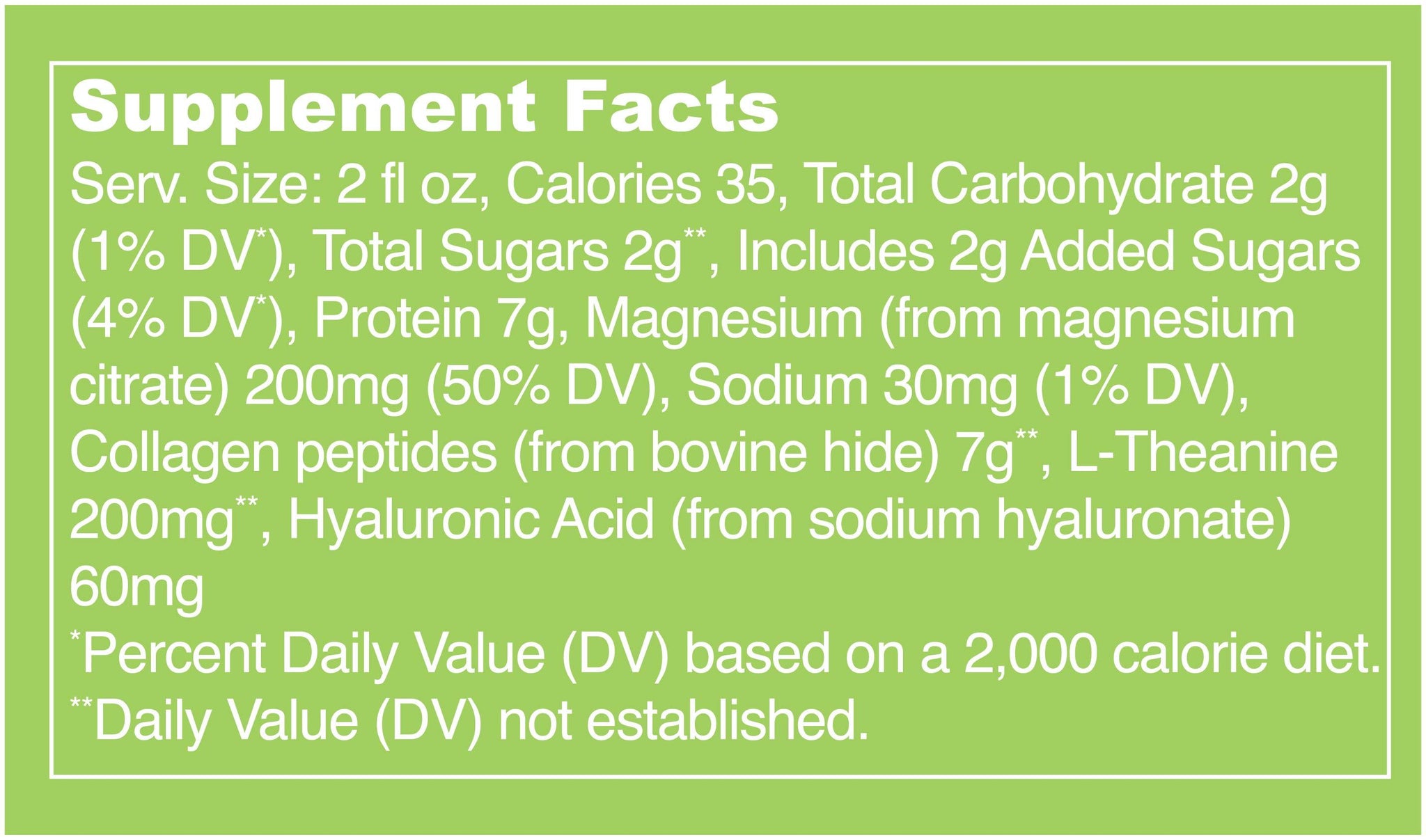 It’s time for a little R&R. Infused with notes of chamomile and citrus, this calming shot combines 7g of collagen peptides, magnesium and L-Theanine for the perfect portion of relaxation.