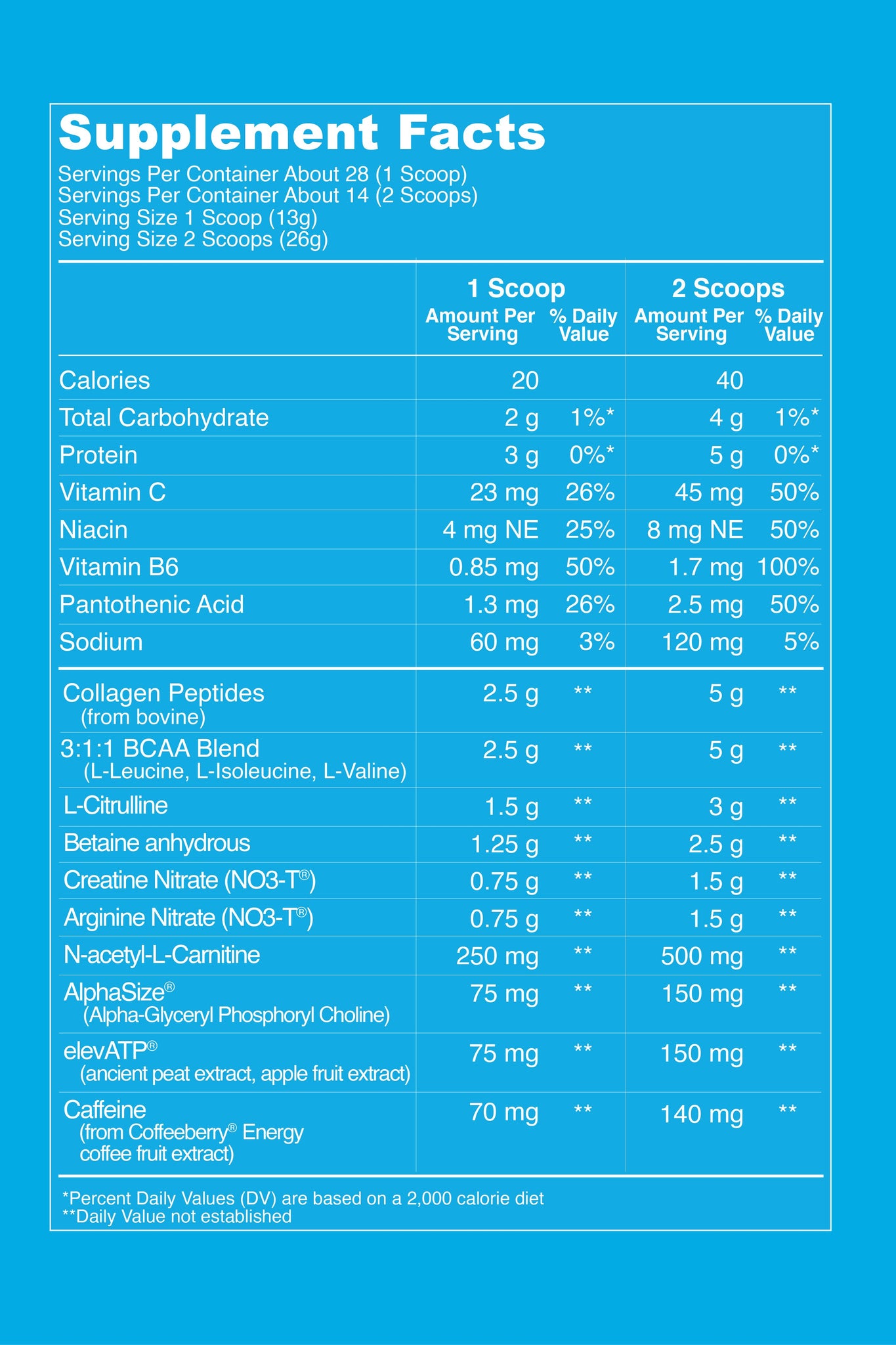 Fuel every movement with Vital Performance™ PRE, a uniquely tailored pre-workout that’s packed with functional ingredients to help you conquer larger-than-life fitness goals. Collagen Peptides and Branched-Chain Amino Acids (BCAA) work to support muscles and joints while creatine nitrate and elevATP® support enhanced power output. Caffeine from Coffeeberry® coffee fruit extract acts as an energy booster to keep you going strong.**